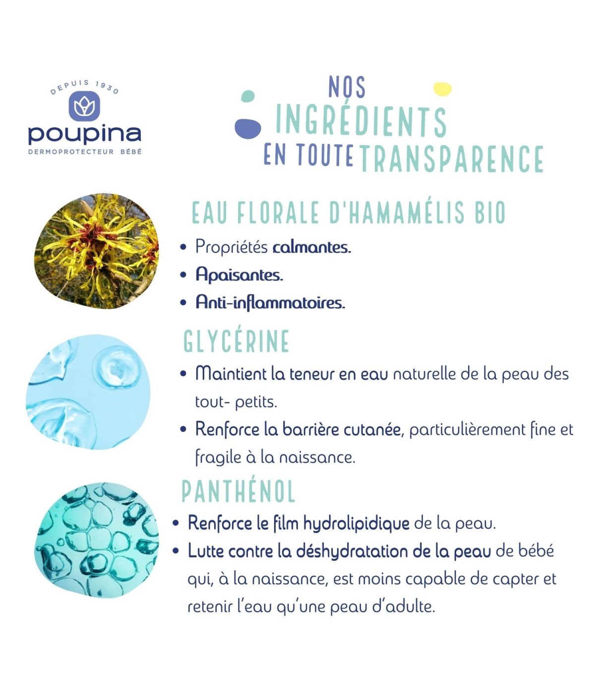 - À l'eau florale d'hamamélis biologique et cultivée en France.